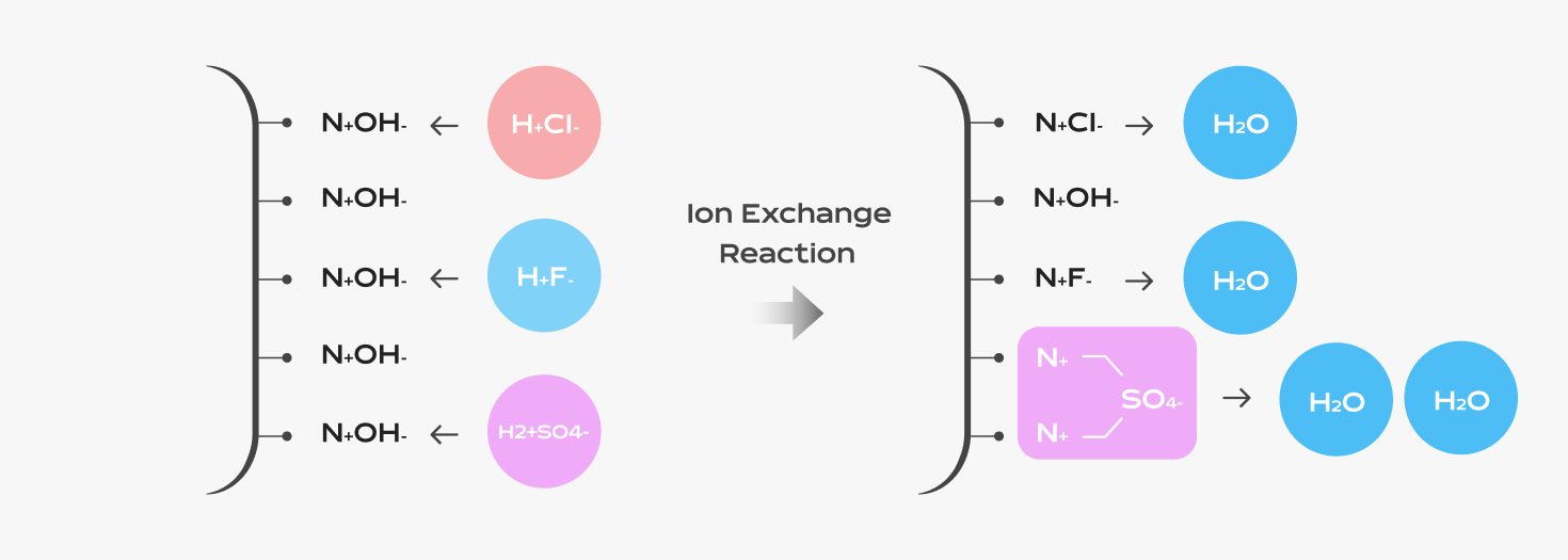 2(-R-N-OH) + H2SO4 → 2(-R-N-)SO4 + 2H2O